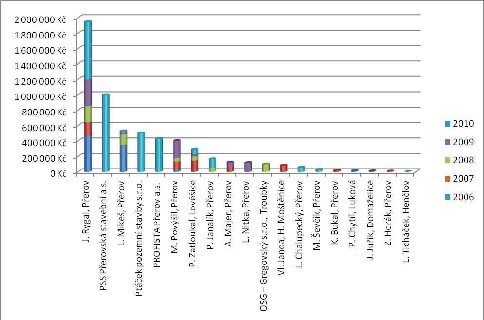Z těchto zveřejněných dat, lze konstatovat, že největší objem prací suverénně vyhrává p. Rygál a velmi těsně mu sekunduje PSS. Oba tyto subjekty ve sledovaném období získali více jak 50% všech zakázek související s výmalbami zadanými městem. Jak PSS, tak pan Rygál mají těsné vazby na pana primátora a výsledek těchto vazeb je znát i na objemu zadaných zakázek z veřejného, municipálního rozpočtu města Přerova. O letitých kontaktech PSS na naše radní se není potřeba sáhodlouze rozepisovat. K panu Rygálovi je možno konstatovat, že je zetěm pana primátora.